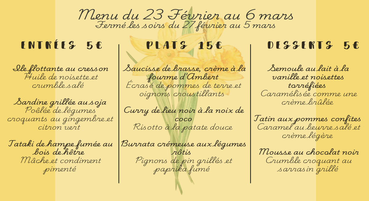 Sur place : de 12h00 à 14h30 - Réservation conseillée